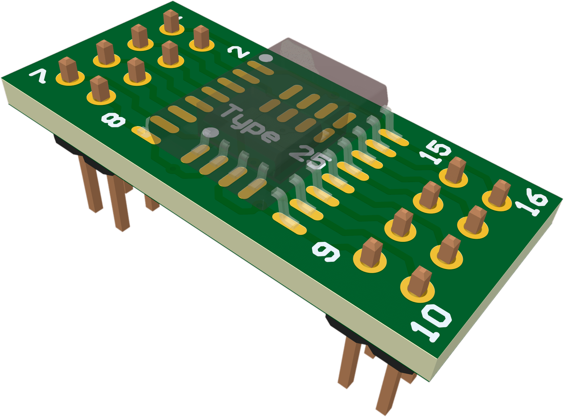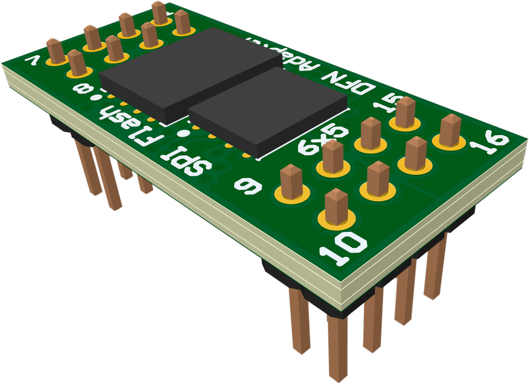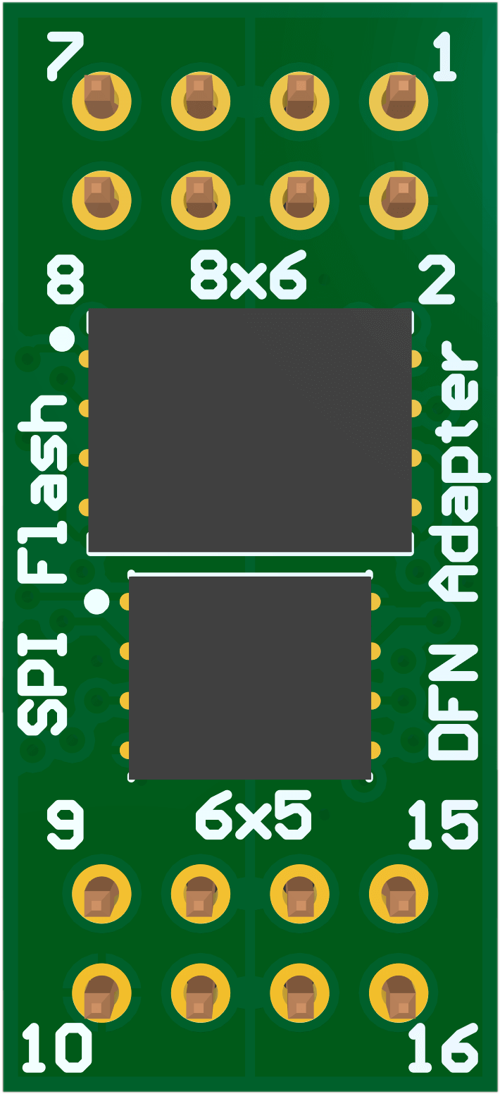 The serial flash devices are soldered on adapter boards that plug in to a main board via a 8x2 adapter header. Different adapter boards are provided to support different package types such as SO-8, SO-16, BGA, and SON.