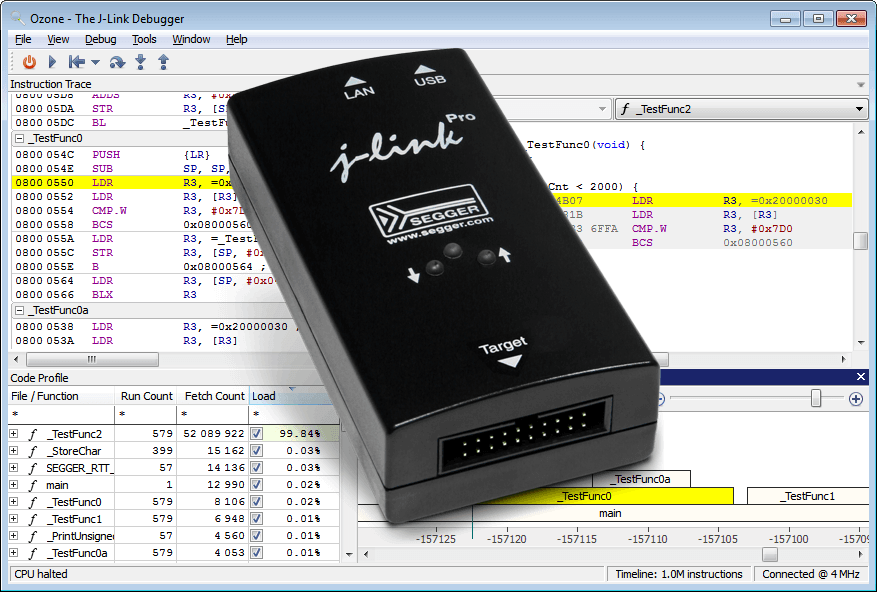 The J-Link team will get the most out of your device. The device support includes fastest possible flash programming, with the support of our dual-banked turbo-mode flash loaders, and proper PLL init to maximize programming speed. Custom RESET is implemented where necessary. Unlimited breakpoints in Flash memory can be made available for your devices, even external flash (parallel CFI or (Q)SPI). The J-Link support includes support for J-Flash as well as for our Flasher family of production programmers.