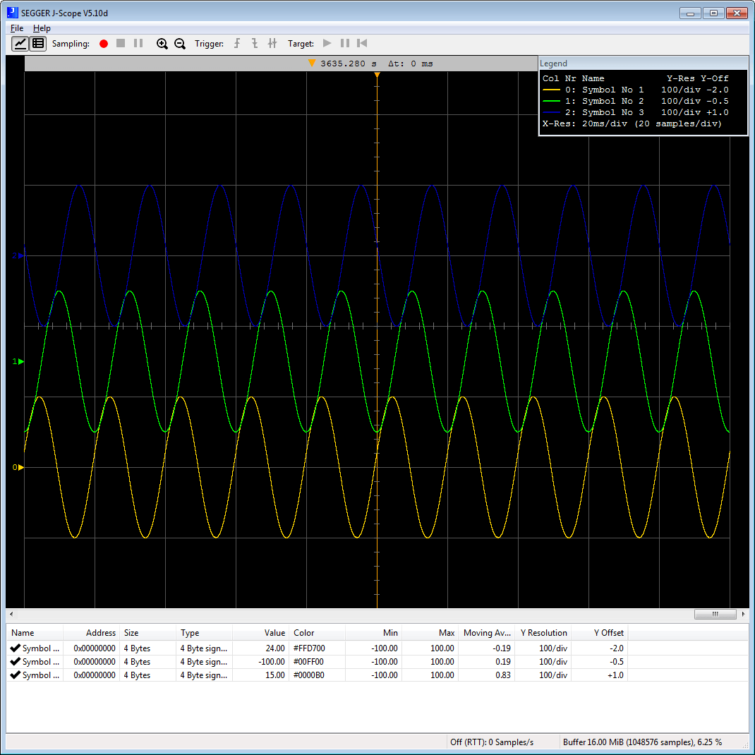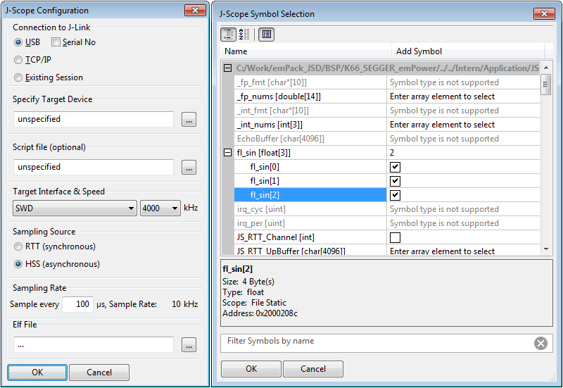 - Location of variables does not need to be known to J-Scope. Location of RTT buffer is automatically detected by J-Scope on connect.