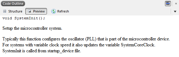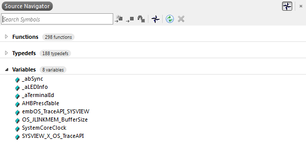 Even if your project is modular and well structured, it can be hard to remember where a function or symbol is defined. The Source Navigator provides fast access to all your functions typedefs and variables with a single click. You can also use the quick input of Find Symbol (Alt+Y) and Find Method (Ctrl+M) for even faster navigation.