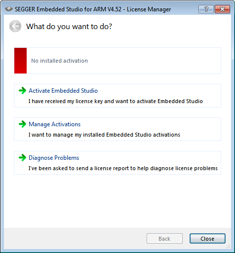 Commercial-use licenses for Embedded Studio are available as three activation types: