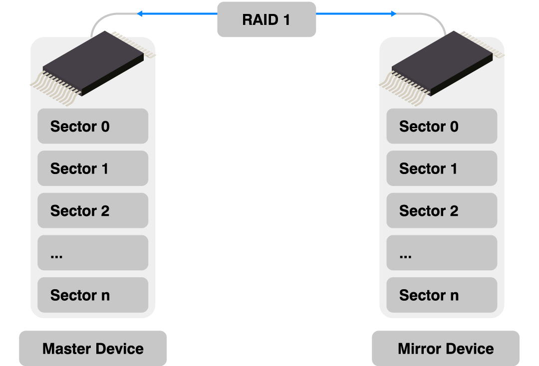 emFile offers maximum data integrity and reliability with RAID 1. It provides protection from storage device defects and failures, and it works on the storage layer with FAT and EFS file systems.