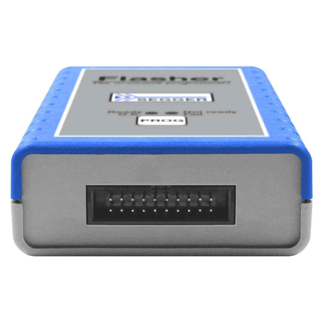 Flasher PRO XL is the extra-large-memory version of SEGGER’s universal flash programmer Flasher PRO. With all the same features as the Flasher PRO, the Flasher PRO XL expands the original’s 128 MB of memory to 2 GB, meaning it has 16 times as much internal flash memory as PRO. It can host a variety of large firmware images or variants, and it supports multiple configurations simultaneously.