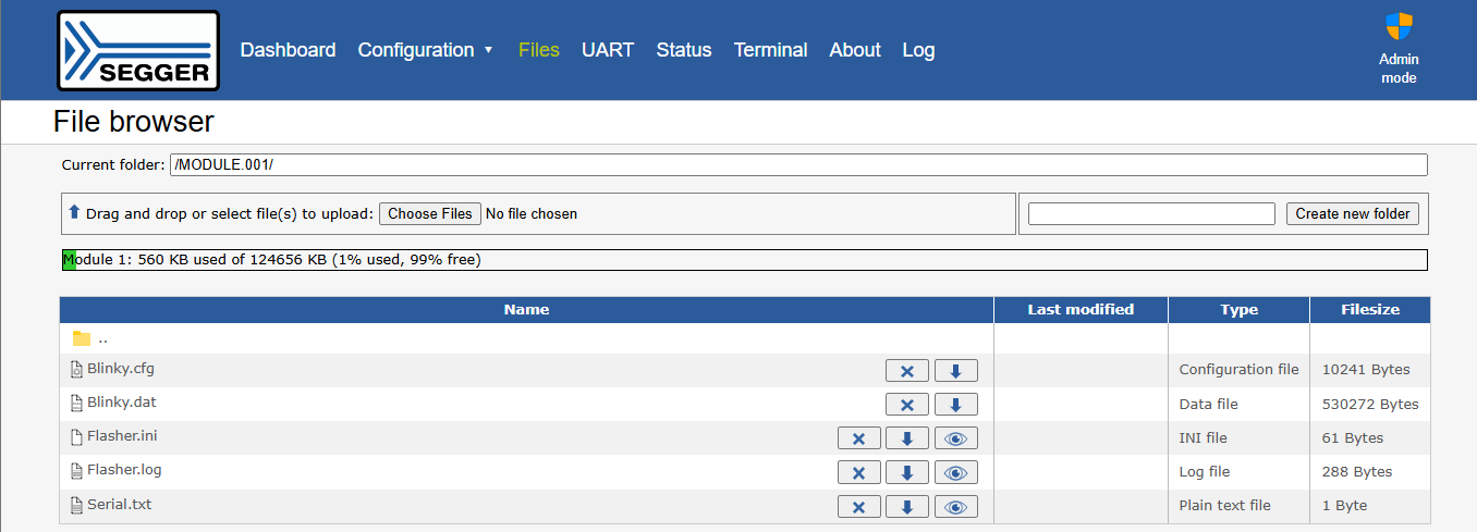 The built-in web server enables file management for all connected modules. This includes