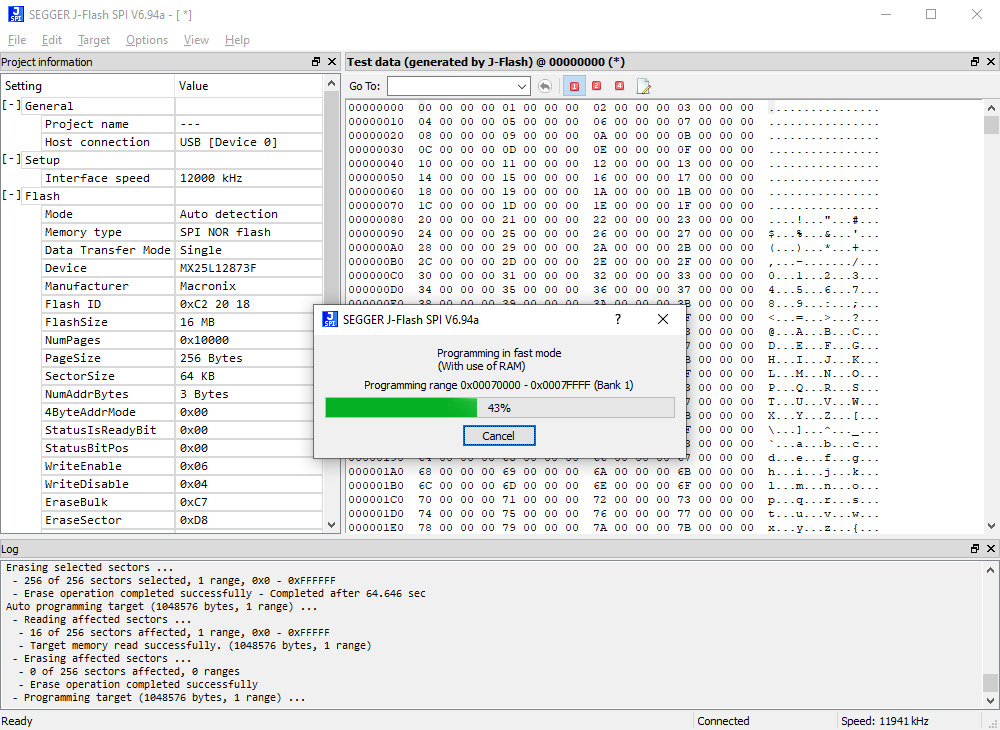 J-Flash SPI is a software for Flashers and J-Links to directly program (Q)SPI flashes. It is also used to setup the Flasher for stand-alone programming of those devices. The flash is programmed directly via J-Link or Flasher using the SPI protocol, with no CPU / MCU in between. Since J-Link or Flasher communicates directly with the flash, even flashes connected to CPUs not supported by J-Link or Flasher can be programmed.