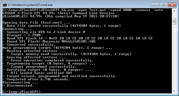 Please note that the GUI version of J-Flash SPI can also be controlled from the command line.