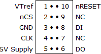 | 10 | nRESET | Output | Target CPU reset signal. Typically connected to the RESET pin of the target CPU, which is typically called "nRST", "nRESET" or "RESET". |