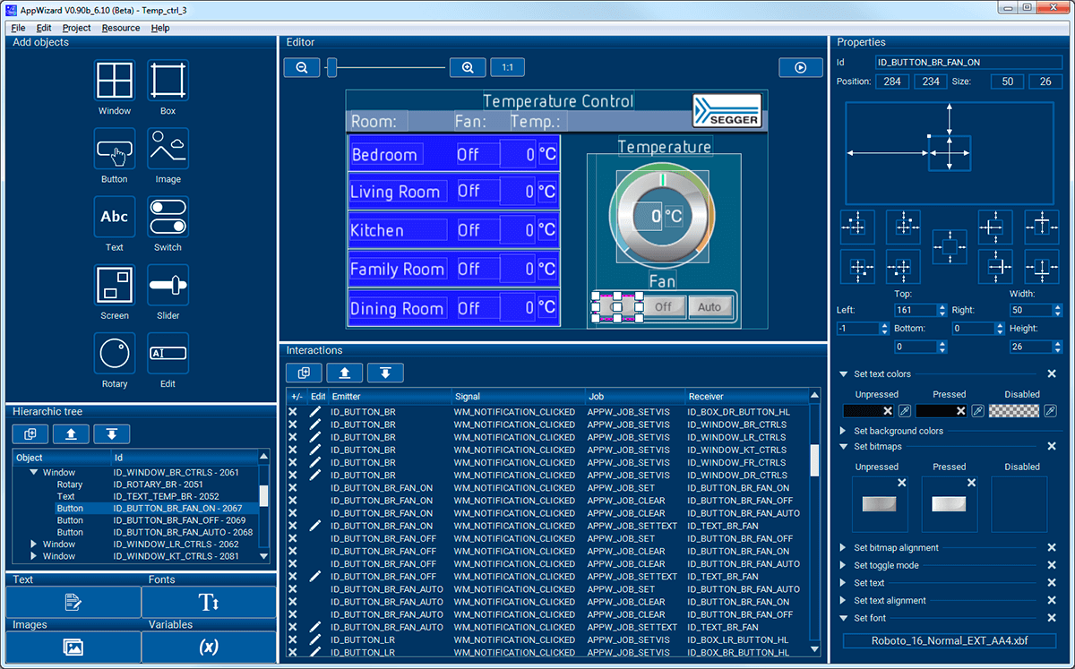 The SEGGER AppWizard isn’t just powerful. It is also intuitive: this is thanks to its visual WYSIWYG editor. With this visual editor, users can actually look at their application as they are building it. With integrated resource management, the likes of fonts and images are automatically converted.